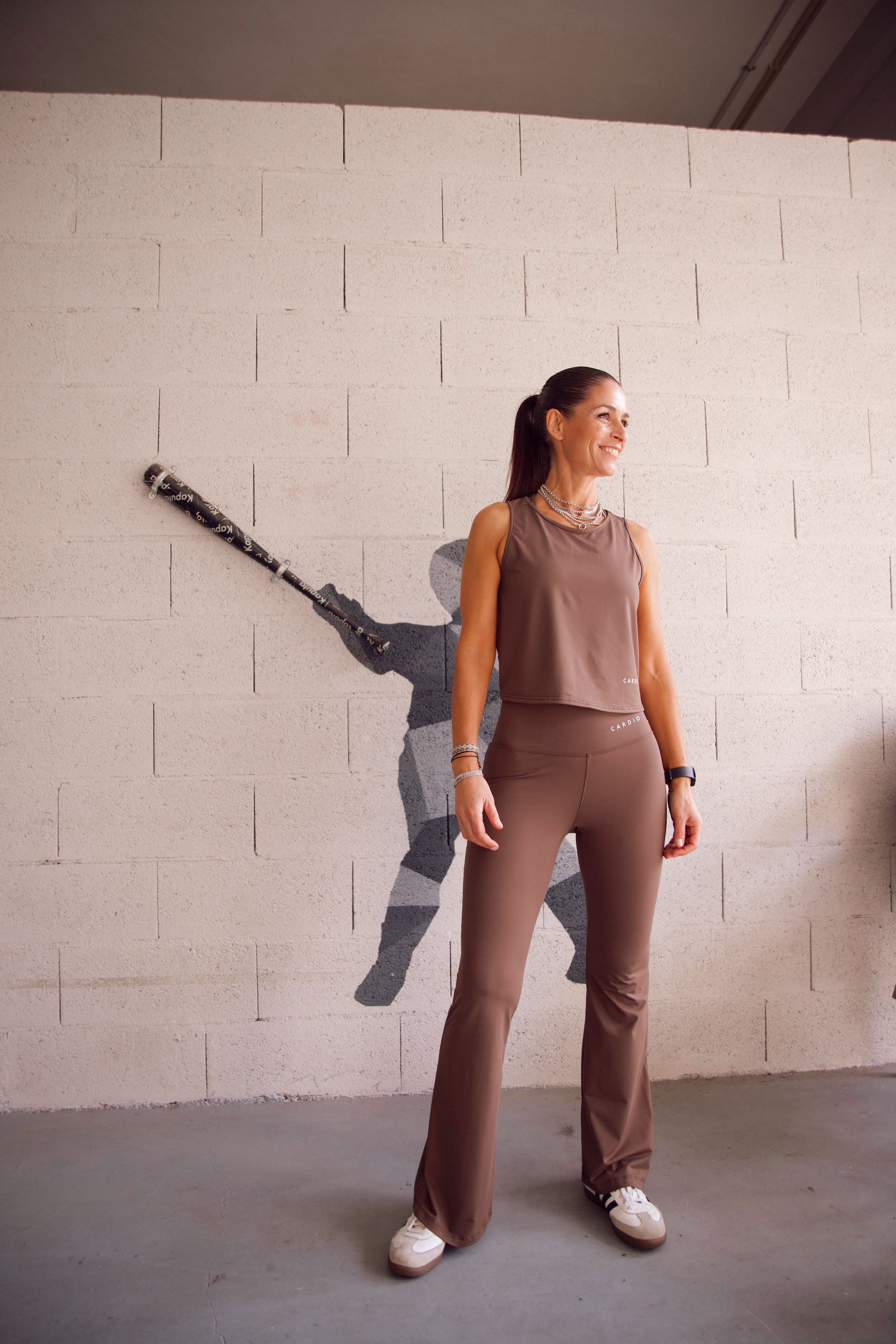 A legging boca de sino combina o conforto do desporto com o toque elegante da moda.